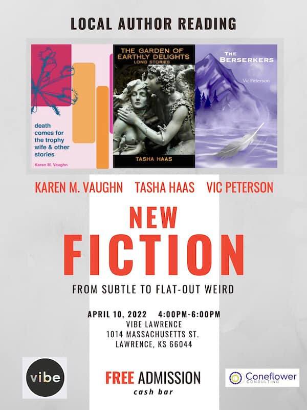 Hey friends! Stop by Vibe Lawrence later this month for a reading from my new book, Death Comes for the Trophy Wife, as well as selected readings from Tasha Haas and Vic Peterson, who are both excellent. Admission is free, and there will be a cash bar. Hope to see you there!